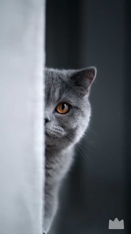 British Shorthair cat, hiding half of its face behind a wall edge and peeking at the camera, only one eye fully visible, playful shy mood, soft natural light, photorealistic, ultra-detailed